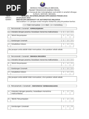 Maklum Balas Borang Penilaian Pdf