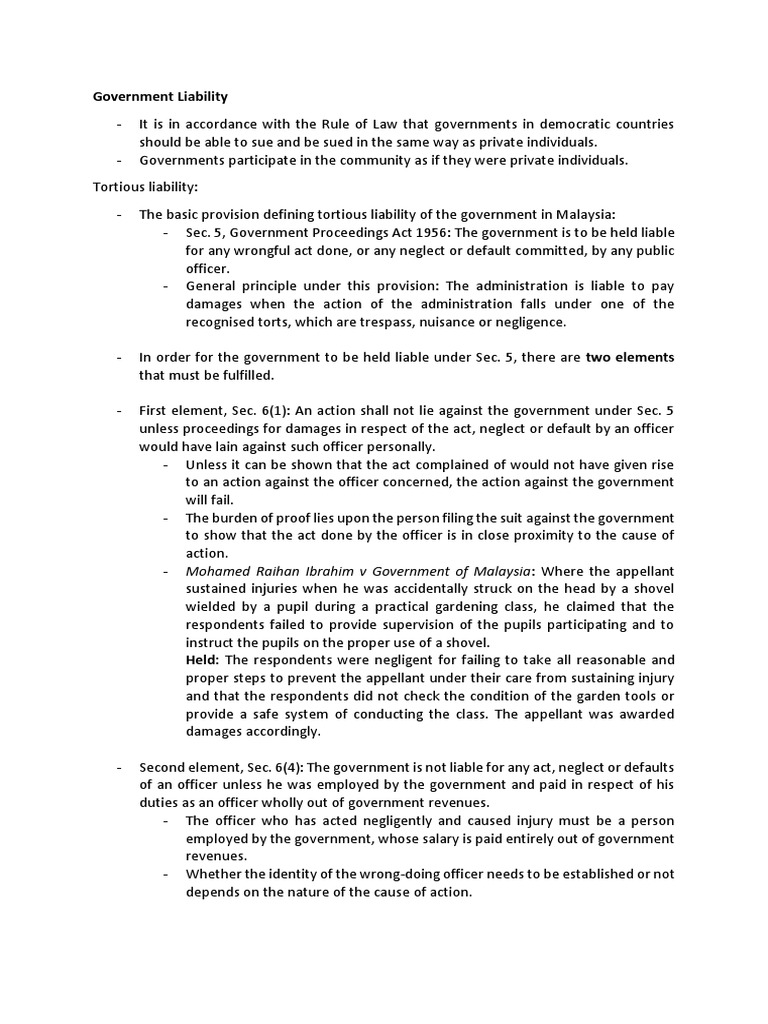 Government Liability Negligence Tort