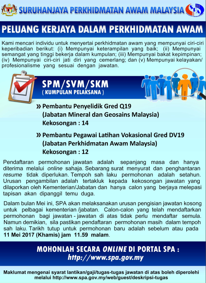 Jawatan Kosong Kerajaan Di Suruhanjaya Perkhidmatan Awam Spa Spa8 11 Mei 2017 Appjawatan Malaysia