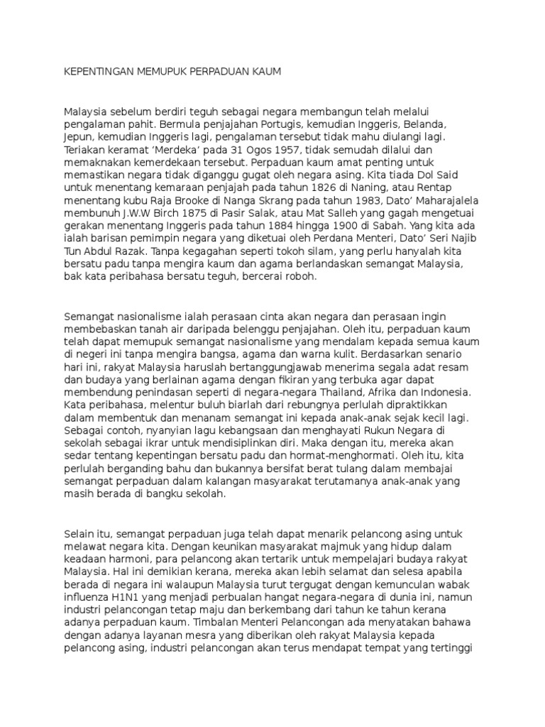 Kepentingan Memupuk Perpaduan Kaum Pdf Document