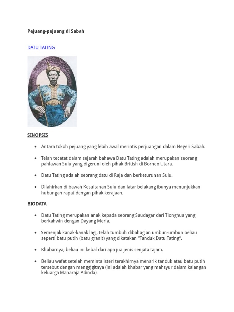 Latar Belakang Pejuang Pejuang Di Sabah Tokoh Tokoh Pejuang Di Sabah