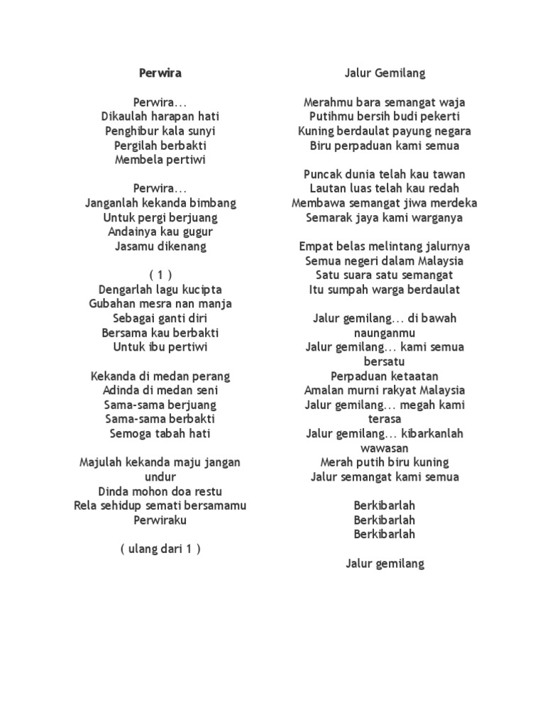 Lirik Lagu Jalur Gemilang Merahmu Bara Semangat Waja Putihmu Bersih Budi Pekerti Kuning Berdaulat Payung