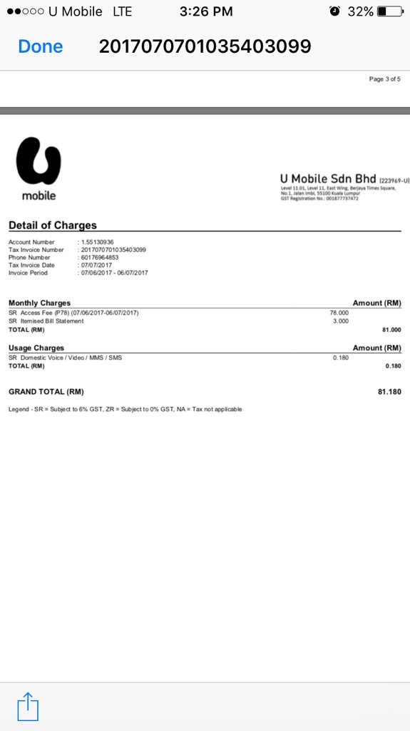 U Mobile Bill Statement